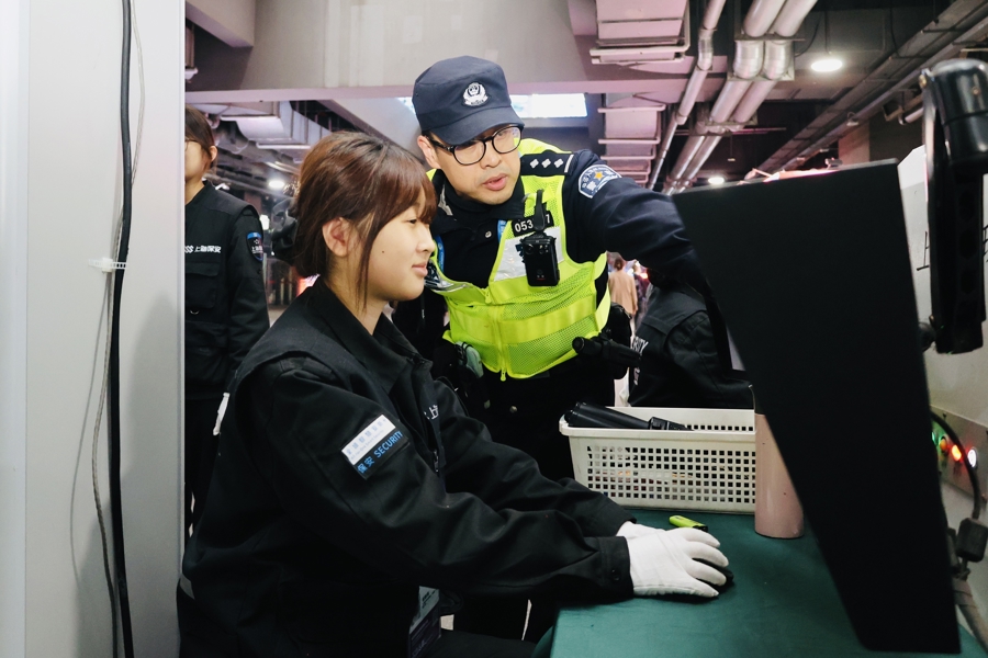 针对专业观众日入馆需求激增的特点,青浦警方与轨交警方深度联动,依据实时客流变化,分阶段启用三级分流引导措施——进入检验区后,持有效通行证件者只需前行就能完成自动核验,全程无需停留,只要随身物品安检完成便可顺利入馆,安检速度明显提升。